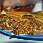 Проделываем точно такую же процедуру с начинкой из тыквы и грецкого ореха - 2 рулета. И еще 2 рулета с тыквой и корицей.
