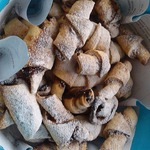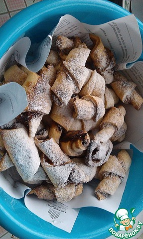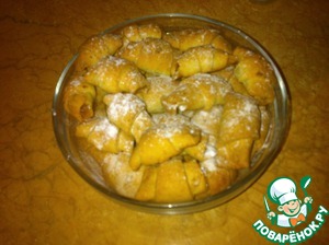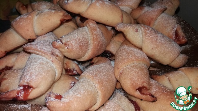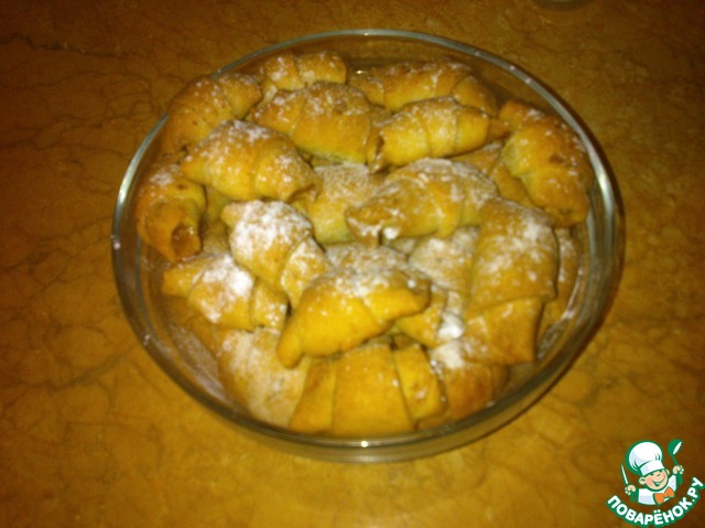 Готовые рогалики посыпаем сахарной пудрой. Вот и все, можно пить чай.
