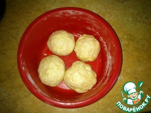 Разделить тесто на 4 части и скатать из них отдельно шарики, которые ставим в холодильник на 30 минут