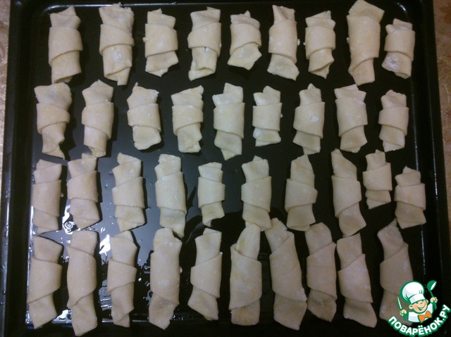 Полученные рогалики отправляем в духовку. Температура 180 градусов, время выпекания зависит от вашей духовки. Выпекаем до золотистого цвета.