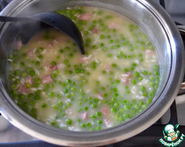 Я использую всегда замороженный горошек, хотя по весне можно взять и свежий (как в рецепте оригинале)... -
