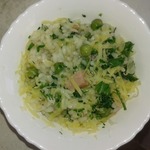 Ни замороженного, ни свежего горошка не было, поэтому в конце готовки добавила консервированный. В следующий раз попробую по рецепту.