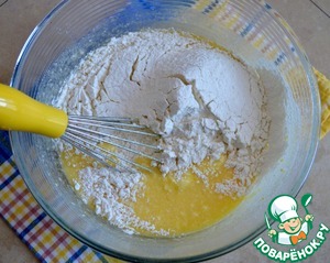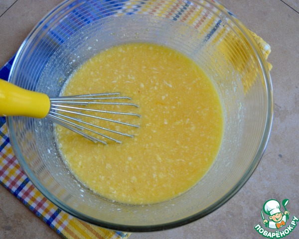 • В миске растереть яйца с сахаром. Добавить размягченное сливочное масло, сок и лимонную цедру; как следует всё размешать.