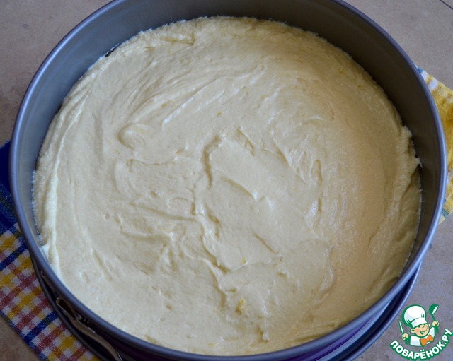 • Выложить тесто в форму для выпечки (26 см) и разровнять. Выпекать в разогретой до 180 градусов духовке олоко 30 минут.
