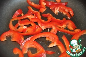 На той же сковороде обжариваем (добавив ещё масло) болгарский перец, порезанный полосками.