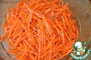 Морковь моем, чистим, натираем с помощью специальной тёрки.