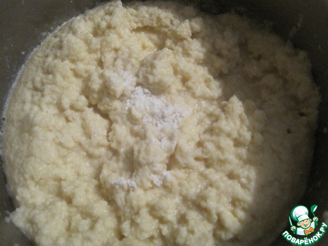 Добавляем сахар и соду и при постоянном активном помешивании варим сыр. Солим по вкусу (я делаю сыр слегка солоноватым, мне так больше нравится)