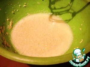 Яйца взбить с сахаром. Добавить сливочное масло и топлёное молоко. Перемешать до однородности.