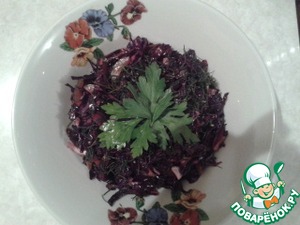 Поджарила свеклу и, чтобы не было ей скучно в салатнике, добавила друзей по цвету: краснокочанную капусту и красный репчатый лук, украсила зеленью, и вот - вегетерианский салат. Всё просто и вкусно. Пробуйте на здоровье!