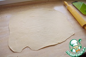Теперь раскатываем его тонко (примерно 3-4 мм) и желательно стараемся сформировать прямоугольный пласт