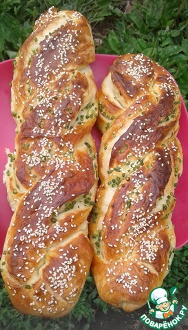 Действительно, резковата(правда я добавила "от души"). Зелень чеснока протерла в блендере и заморозила , по совету кулинаров . Второй раз пекла уже с замороженым чесноком. Положила поменьше и замороженый он стал помягче. А сверху посыпала кунжутом, получился еще красивее.