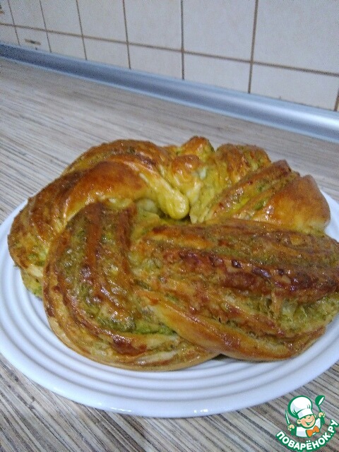 Сделала ваш хлебушек, только без сыра и немного добавила соли в начинку и не стала его сворачивать веночком, а заплела по вашему формату и оставила красивым прямым батончиком, так вот он бесподобен! Я летом стрелки на мясорубке перекручиваю и в маленькие одноразовые баночки порционно замораживаю. К борщу на нашем столе он будет регулярно появляться. Спасибо вам за вкусную идею.