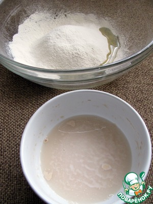 Для этого в теплой воде растворить мед. Добавить сухие дрожжи, дать немного постоять в теплом месте минут на 5-10.