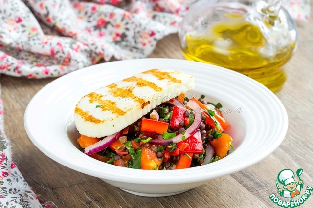 Салат с чечевицей и жареным сыром