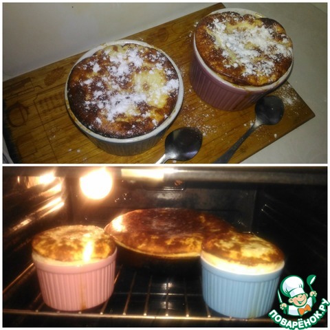 По прошествии получаса наш десерт готов. В духовке он очень хорошо поднимается :) |