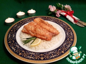 Рыбка наша готова, полить соусом и подавать с рисом)
