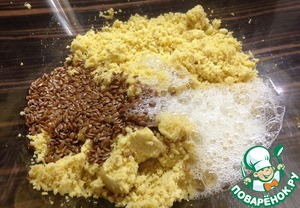 Измельчённый нут переложить в миску, добавить слегка взбитый белок, льняное семя и хорошо вымесить.