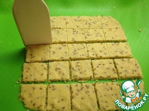 Теперь, слегка нажимая ножом, разделить квадрат на сегменты - будущие хлебцы. -