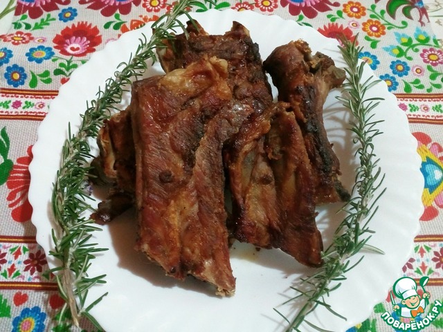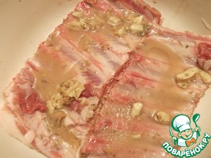 Смазываем этим маринадом ребра. Оставляем на несколько часов, я оставляла на ночь, в прохладном месте.