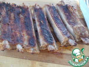 Ребра нужно выбрать ровненькие и красивые, с жирком. Мы их не режем, а оставляем вот такими пластами. Моем, обтираем полотенцем.