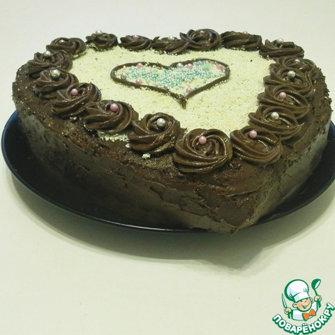 Утром украшаем торт подготовленным кремом при помощи кондитерского шприца. Я решила сделать классические розочки и для контраста натерла сверху плитку белого шоколада.
