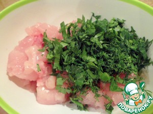 Грудку с зеленью нарезать, добавить сливки и измельчить блендером.