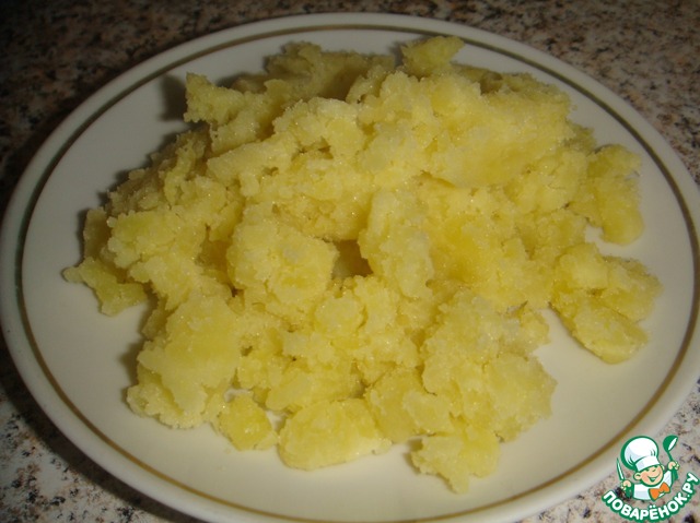 Отварить картофель, подавить картофелемялкой.