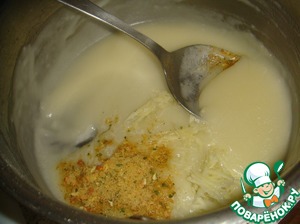 Снимаем с огня, добавляем чеснок и бульонный кубик. Размешать. Остудить до 40 градусов.