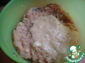 Добавить соус к фаршу и все хорошенько вымесить. Убрать фарш в холодильник на 2 часа.