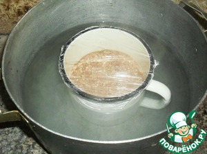 Верх кружки обернуть пищевой пленкой, плотненько.