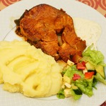 В маленькой миске смешать все ингредиенты для маринада: чеснок, пропущенный через пресс, паприку, травы, перец, мед, цедру, лавровый лист кусочками, оливковое масло и соевый соус. -