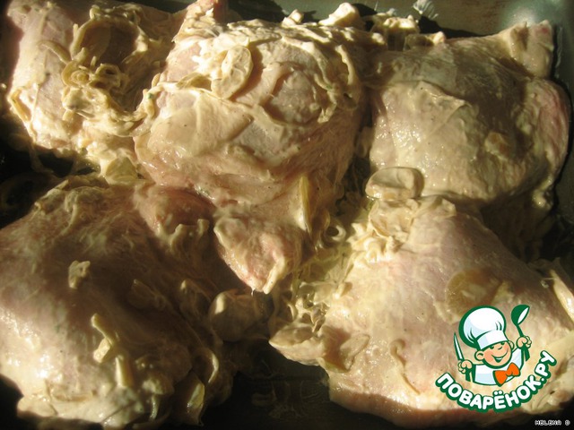 Oбмазываем куриные кусочки и оставляем их на 30 минут. -