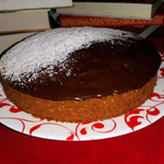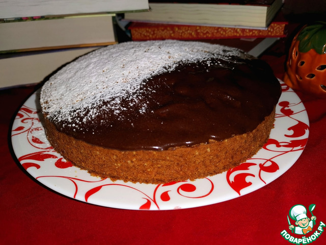 Масло растопить на огне, добавить сахар и помешивать до полного растворения, добавить какао и залить остывший пирог.