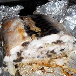 Сворачиваем рулетом, заворачиваем в фольгу и запекаем при 220 *