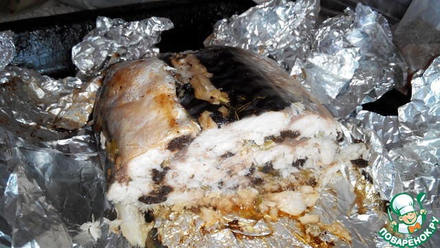 "Ей нужно 30-35 минут. Я проверяла термометром, во внутрь вставляла, было 80.8°C , это даже сильно передержала, нужно для рыбы 60-63°C. И еще, если будешь готовить, заверни в несколько слоев пленки, а потом уже в фольгу, рыба будет плотненькая."