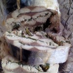 Это универсальный рулет, который можно использовать как основное горячее блюдо и как холодную закуску. Готовится просто и быстро. Вкус нежный, но насыщенный. При запекании скумбрия не становится сухой, а готовое блюдо получается сочным, нежным и очень вкусным. Охлажденная скумбрия, приготовленная по этому рецепту, напоминает вкус рыбы с ароматом копчения.
