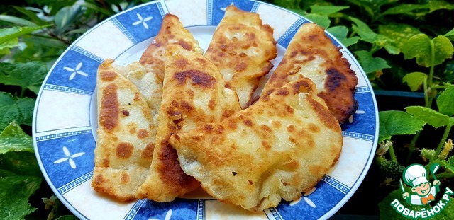В сковороду наливаем растительное масло и жарим чебуреки с обоих сторон на среднем огне до румяной корочки. Масло РАСКАЛИТЬ, потом огонь сбавить до ниже среднего, иначе будет зажариваться раньше, чем ПРОжариваться...
