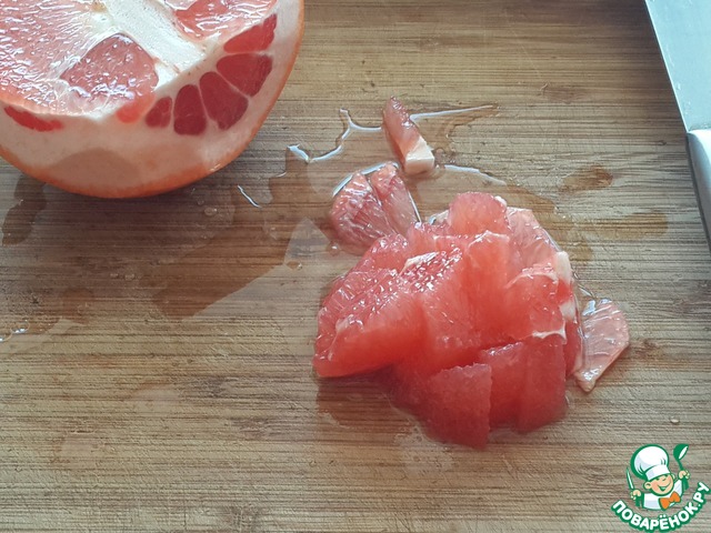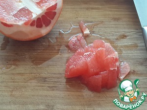Грейпфрут освободите от пленок и нарежьте кубиками