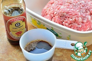 Соли можете не добавлять, если для вас достаточно соевого соуса, для меня было достаточно еще подсолить 1% от массы фарша;