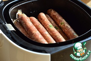 Готовить в воде (или в духовке на решетке, или в мультиварке) при 85 градусах 15 минут на 1 см диаметра колбаски, я готовила в мультипечи...