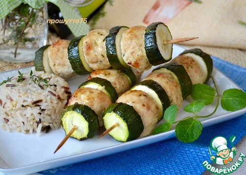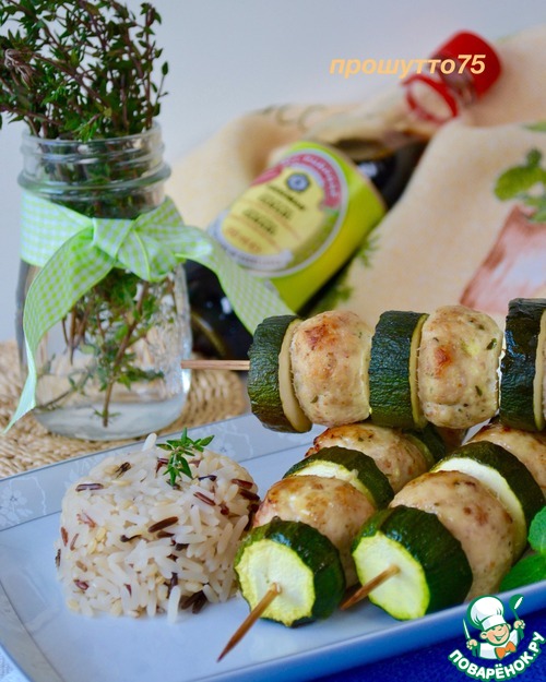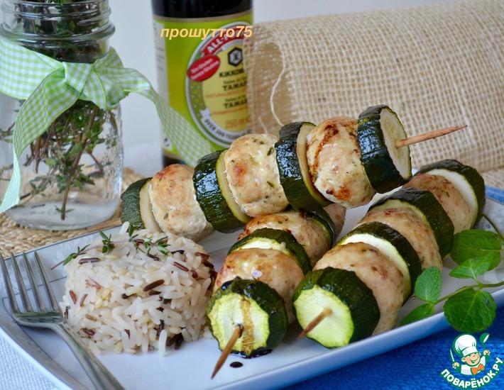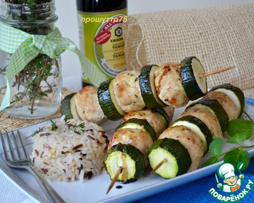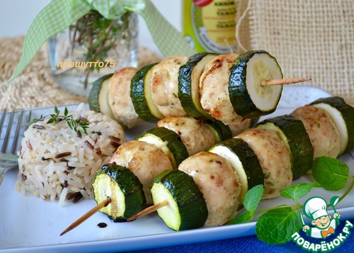 Рецепт «Шашлыки с куриными тефтелями и цуккини»: