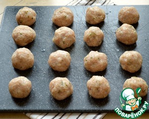 Сформировать из полученного фарша маленькие тефтельки (размером с грецкий орех). Должно получиться 15-16 шт.