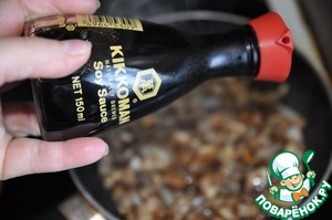 Добавляем соевый соус "Киккоман", перемешиваем, тушим 2 минуты.