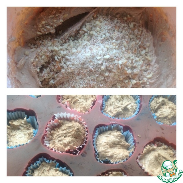 • Миндаль смолоть в блендере не очень мелко, не "в пыль". Добавить к тесту, перемешать. Тесто разложить по формочкам и отправить в духовку при 180 гр до готовности. Ориентируйтесь на сухую спичку.