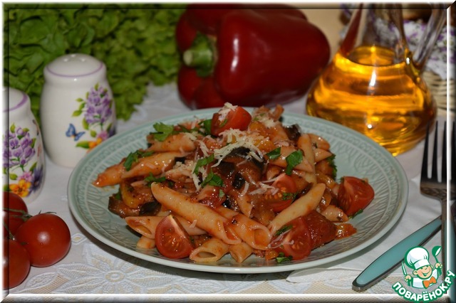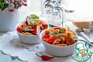 Экспресс рецепт для быстрого ужина или обеда. И также можно отнести этот рецепт к категории "Гости на пороге". Впрочем, вкусный рецепт пасты с овощами на скорую руку.