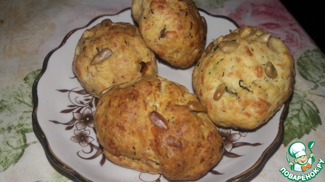 В качестве посыпки использовала остатки тыквенных семечек и специальную смесь семян для салатов (тоже тыквенные семечки, льняное семя, подсолнечные и кунжут). Сверху втопила это семечное великолепие ложкой слегка.