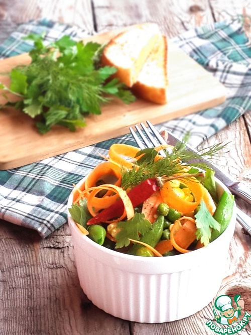 Уже хочется ярких красок на столе, уже хочется чего-то лёгкого и пикантного для поднятия настроения! Свежие овощи - это прекрасно, но увы, пока они не те... Будем делать салат с замороженными овощами!!!
