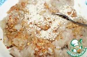 Также в фарш добавить специи на ваш вкус, кунжут и кунжутное масло, все хорошо перемешать.