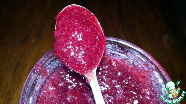 Вот и все, можно собирать десерт. На дно бокала выкладываем слой хлебной крошки и смазываем ее тонким слоем брусничного пюре. В Латвии для этого десерта традиционно используется пюре из измельченной с сахаром свежей брусники, или клюквы. В ингредиентах указано примерное количество сахара, готовьте по своему вкусу. Пюре должно получиться с кислинкой.
