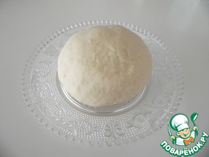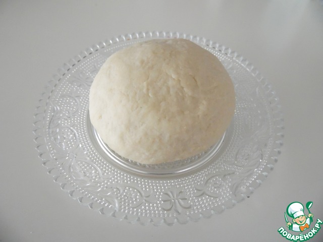 Половину муки смешать солью, добавить уксус, залить кипятком, потом постепенно добавить остальную муку. Вымешивать тесто не менее 15 минут. Накрыть тесто пленкой на полчаса.